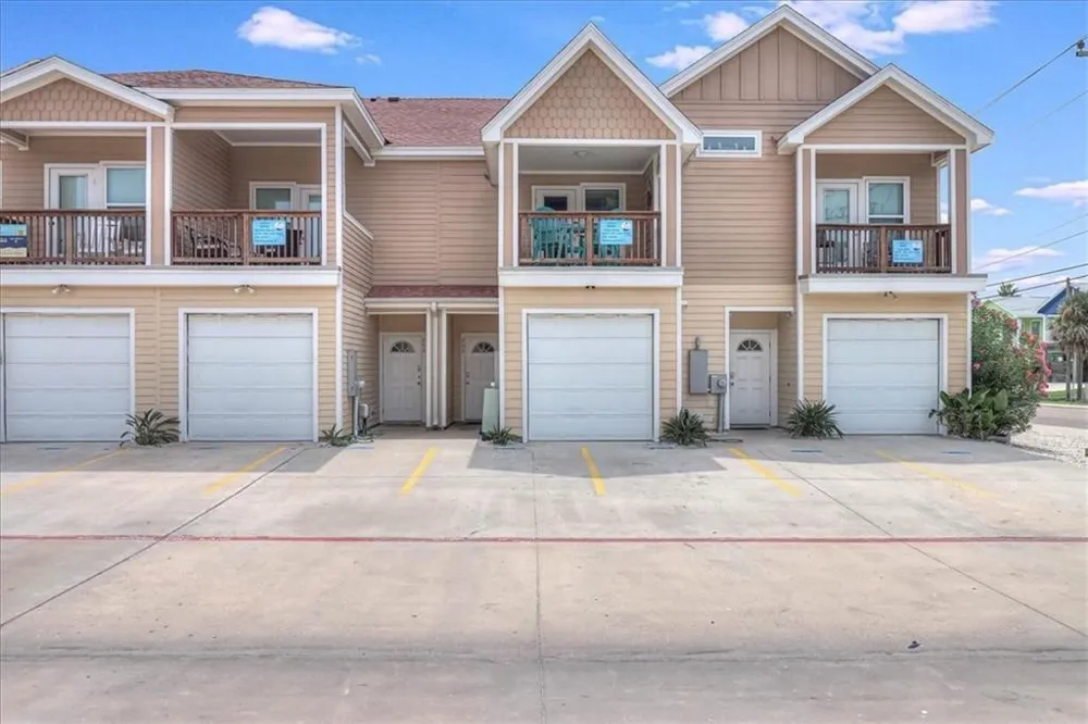 Beachside Townhome #202. Convenient central location with easy access to shopping and restaurants. The beach is 1/4 mile away down Sandcastle Drive. Fully furnished townhome with a Coastal flair. First floor is an open concept living, dining, and kitchen. Stainless steel appliances and granite counters. Covered patio off the living area. Second floor features primary bedroom and bath with walk in shower. Second bedroom with bunk beds. Additional flex space is currently a game area with air hockey and video game. Could be second living area. Covered deck off of the primary bedroom. One car garage great for storage of beach toys and golf cart. Two assigned parking spaces. Overflow parking available. Common area includes a resort style pool with water slide (heated in winter months). Excellent rental potential. Owner can choose rental company. Make this property your beach getaway.