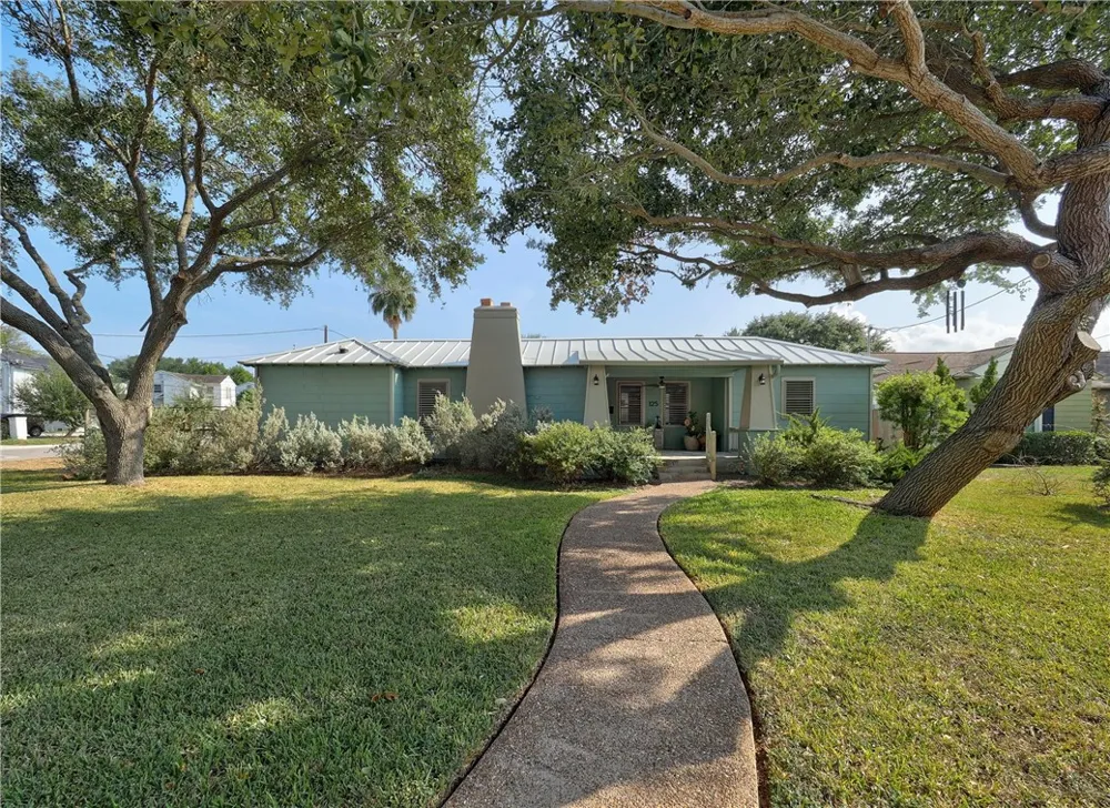Beautifully Renovated 1930s Bungalow in a Highly Sought-After Neighborhood. Step into this completely updated 2-2-1 bungalow, blending classic 1930s charm with modern convenience a block from Corpus Christi Bay and Ropes Park. The open, split floor plan features two primary suites, each designed for comfort and privacy. The larger primary suite features a walk-in-shower, abundant built-ins and a dedicated shoe closet. The spacious, covered front porch offers a vantage point for watching the rain or visiting neighbors as they walk their dogs. The lush front lawn is shaded by mature oak trees, creating a welcoming curb appeal. The modern kitchen boasts a gas range, ample prep space, generous storage, and bar seating for casual dining adjacent to the traditional dining room. The inside utility room with sink and space for a fridge adds even more storage and counter space. Enjoy the inviting living room with a cozy fireplace and abundant natural light that opens to a large, partially cover back deck-idea for relaxing and entertaining. Additional highlights include a metal roof with solar panels for zero electricity bills. With privacy louvered shutters the light shines in and you are always hurricane ready. The detached garage offers a versatile mother-in-law suite, workroom with washer/dryer connections, and extra storage under one roof. Enter drive through an electric gate to find additional parking for your vehicles and recreational toys. Don't miss your chance to own this exceptional home in a coveted neighborhood--schedule your showing today!